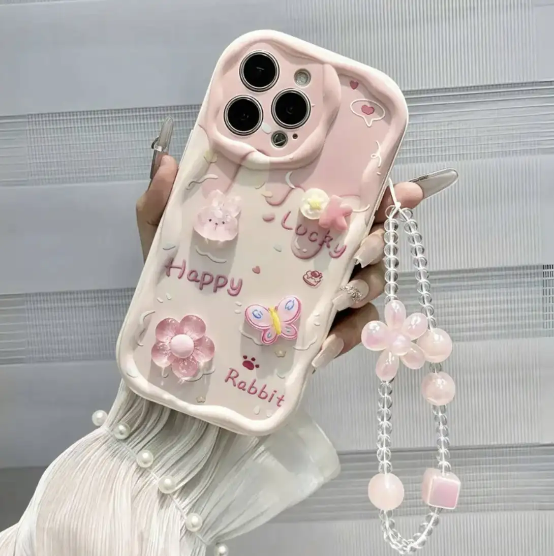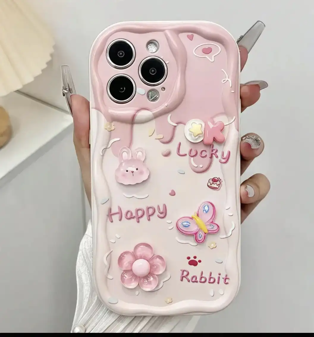Case 3D de conejitos y flores